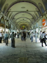 der grosse basar in istanbul ist eine stadt in der stadt, nur komplett überdacht. als wir an einem kleinen platz an der hauptgasse des basars am tee nippen, tippt mich jemand von hinten an. ich drehe mich um: es ist eine ältere frau mit streng zurückgekämmten und zusammengeknoteten haaren, schwarzer mantel, brille, schwarze stoffhose. "was für einen eindruck haben sie von all dem?", fragt sie mich langsam auf englisch. sie scheint aus istanbul zu kommen.