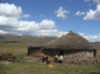 vor den runden steinhütten sind kleine flaggen aufsteckt: weisse, wo sorghumbier verkauft wird, rote für fleisch, gelbe für mehl. anbauen lässt sich auf dem dach afrikas allerdings nichts, hier in rund 3000 metern höhe gedeihen nicht einmal kartoffeln oder rüben im nur 30 zentimeter tiefen tundraboden. der winter ist brutal und treibt die basotho in ihr flachland, das "nur" 1500 bis 2000 meter hoch liegt.