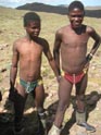 als wir von unserem aussichtspunkt zurück zum jeep laufen, sehen wir plötzlich zwei fast nackte gestalten auf den felsen auftauchen. sie rufen und lachen und stürmen dann hinter uns her. ausser gummistiefeln und badehose tragen die beiden jungs nichts, während wir uns im kühlen wind des hochlandes uns schon unsere fleece-jacken bis unters kinn zugezogen haben.
